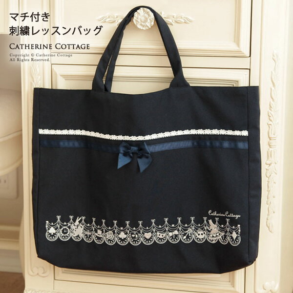 商品仕様 素材 表地:コットン100% 裏地:ポリエステル 100% リボン&テープ部分:ポリエステル 100% レース:コットン100% サイズ 高さ 約30cm×幅 約40cm×マチ 約5cm 持ち手 約13.5cm ご了承いただきたいこと ・商品生地、色合い、コサージュやその他装飾部品の色やデザイン、キャサリンコテージのタグの有無、タグのデザイン等、生産時期によって、差異が生じます。