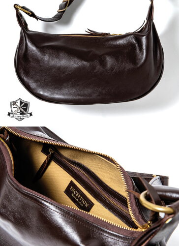 ■商品説明 ■品名:バナナバッグ ■LOT:IPHSB-03 ■表素材:ホースハイド/馬革【茶芯レザー】 ■内素材:ホースハイド/馬革、8号帆布(キャンバス生地) ■サイズ:約W36cm×H18cm×D13cm ■ショルダーベルトサイズ:約63-105cm×4cm ■金具:真鍮 ■TALONジッパー ■生産国:日本 ■店長コメント ■INCEPTION 英国が誇る最高級レザーと日本の職人技術が融合し生まれたINCEPTIONブランド。